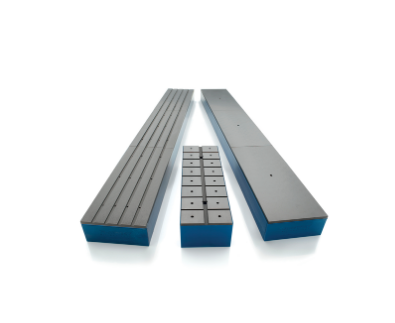 气浮平台结构由气浮导轨(含支承面)、直线电机和光栅尺等主要部分组成。洁净、无水、无油的压缩空气通过气管注入轴承面与气浮导轨之间的气模间隙,气体在气模间隙中流动,从而使轴承表面漂浮在气浮导轨上。