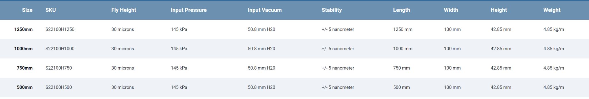 H系列使用更大的真空力,为客户提供卓越的压平能力,这对于高加工速度至关重要。这些高速气条需要小于50微米的气隙,这增加了刚度,从而更好地控制。而且,与我们平板气浮导轨系列中的所有产品一样,用于制造这些平板气浮导轨的软碳基材不会划伤其运输的玻璃表面。
